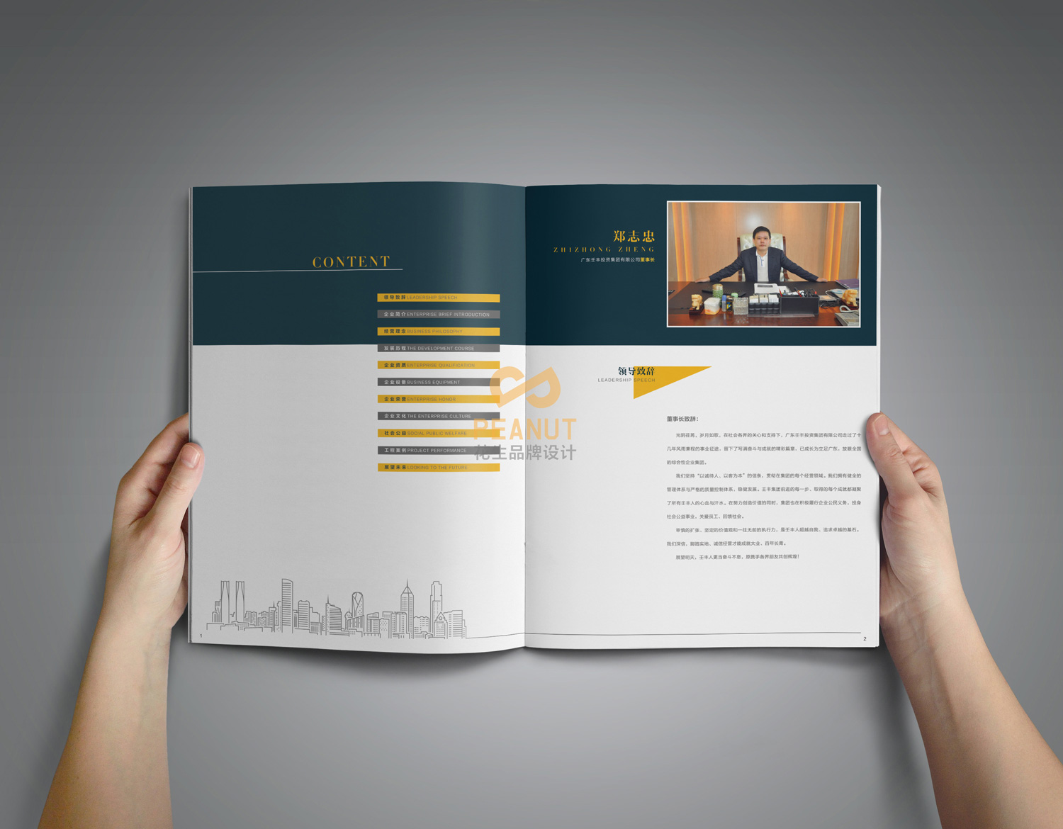 集团形象画册设计哪家好?选择花生品牌设计,专业为集团、企业提供品牌设计服务,15年行业经验,服务超528+知名品牌,行业涉及房地产、金融投资、酒店产业、教育行业、医疗行业、机械设备、IT软件行业、航空行业、食品行业等,设计经验丰富,服务周全,提供集团形象画册文案策划,拍照摄影,创......